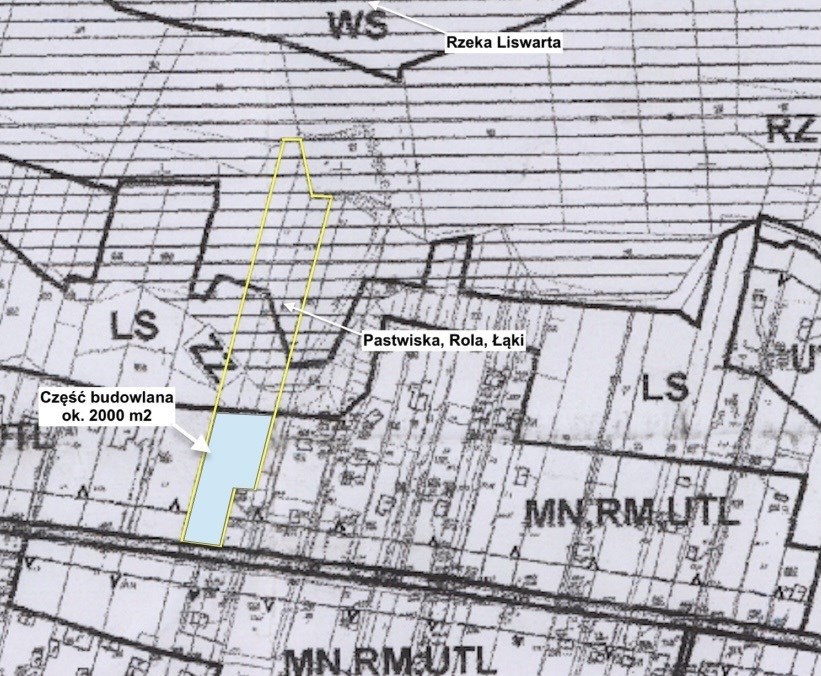 Wg miejscowego planu zagospodarowania - nieruchomość na głębokości do 80 m (ok. 2000 m2), posiada przeznaczenie oznaczone symbolami MN,RM,UTL co oznacza: