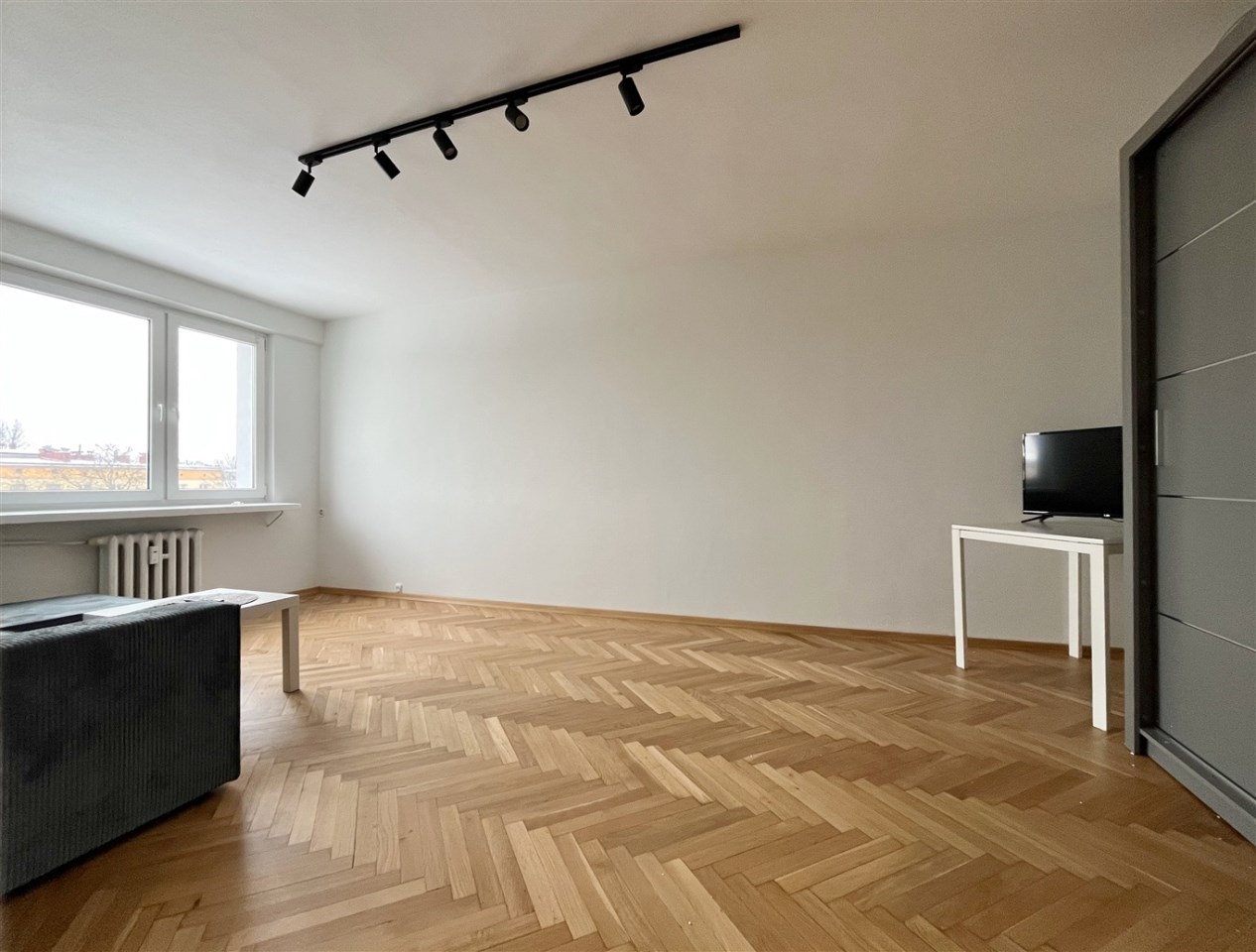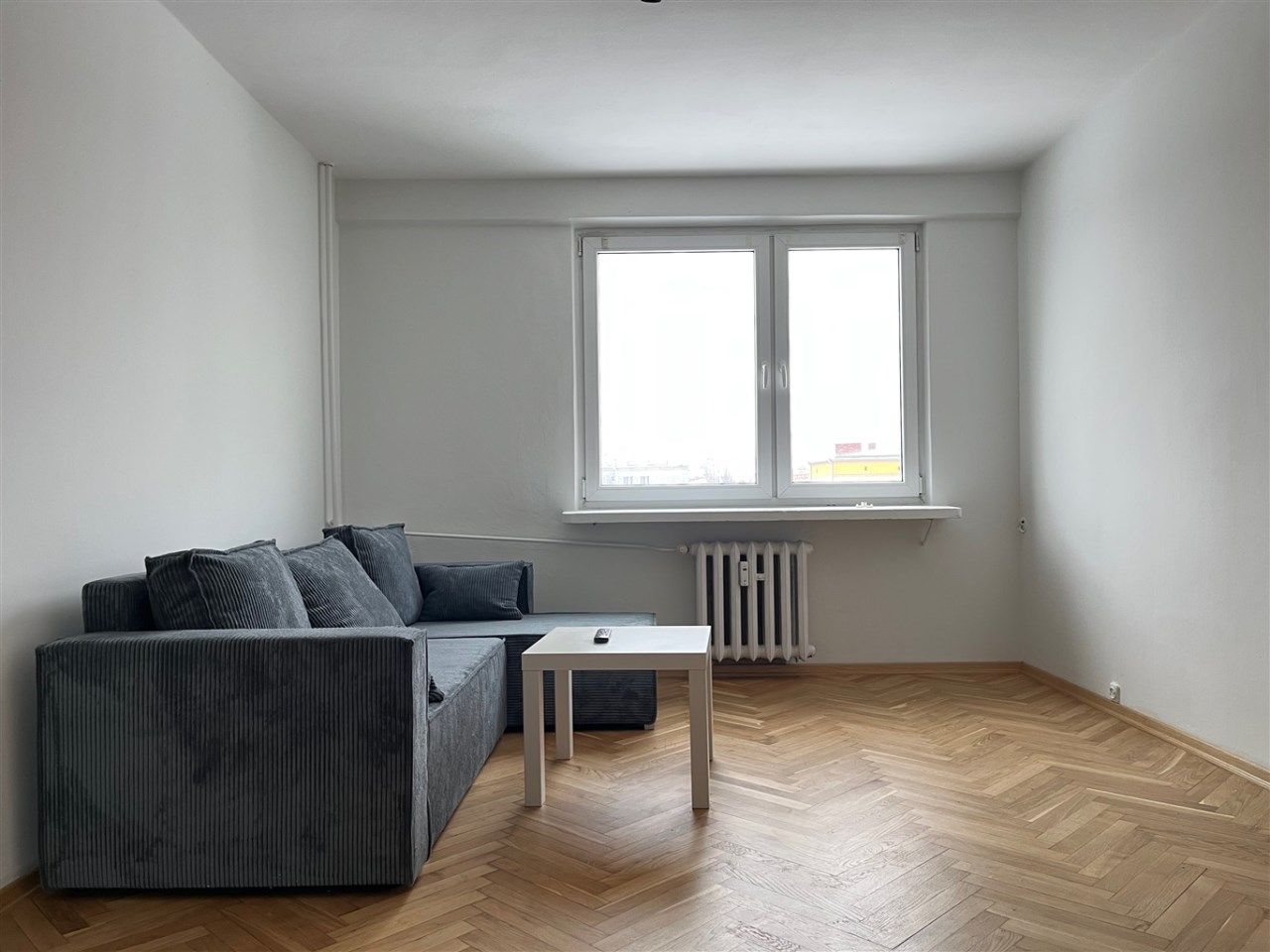 Mieszkanie w stanie dobrym. Na podłogach panele i parkiet (świeżo wycyklinowany), okna PCV z wystawą południową.