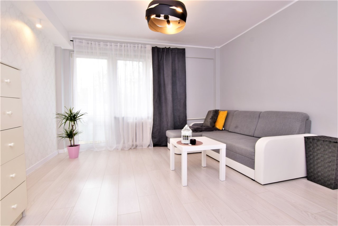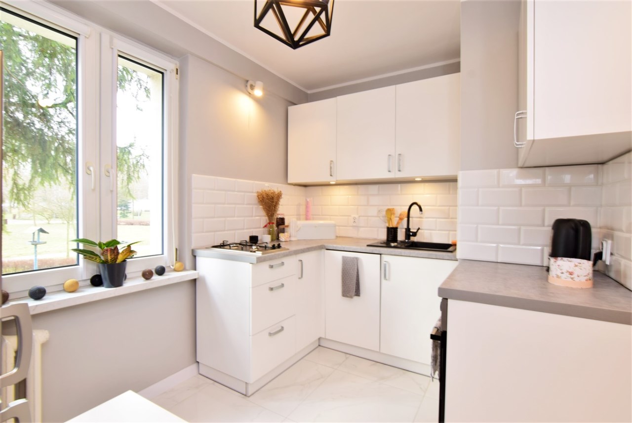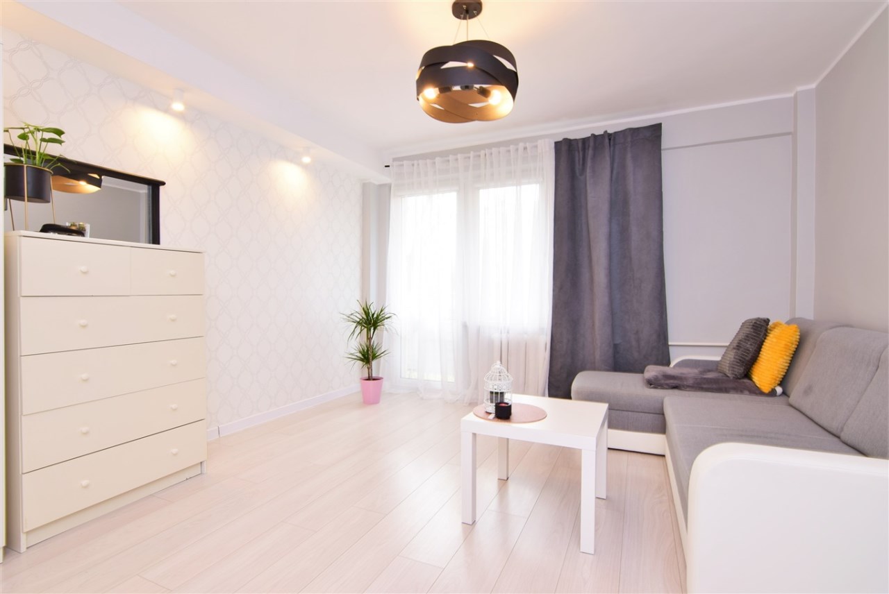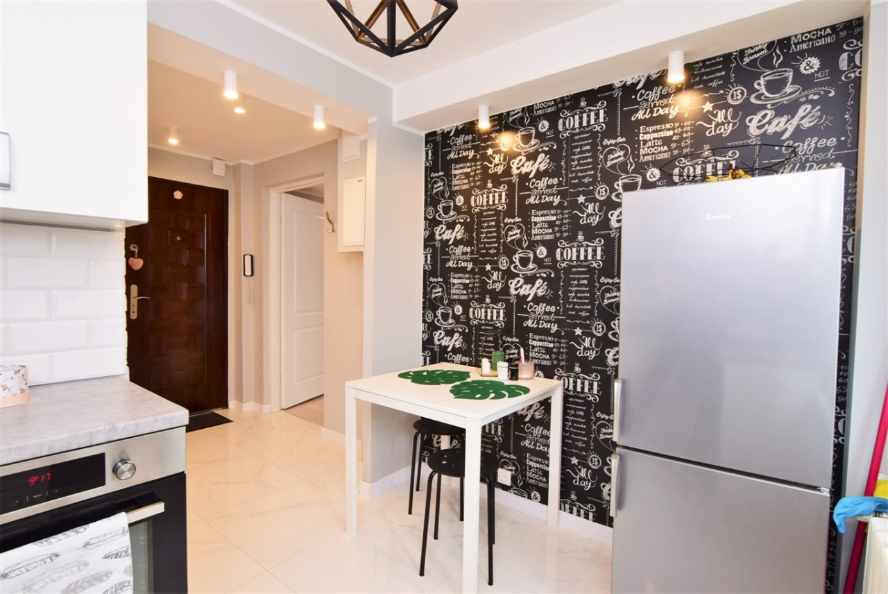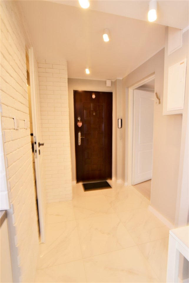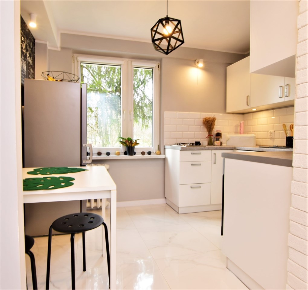 Mieszkanie po remoncie, umeblowane, gotowe do zamieszkania. Okna PCV na stronę południową z widokiem na Skwer Kaliny Jędrusik. Duża kuchnia ze stołem. Mały balkon.