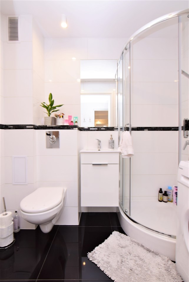 Standard: na podłogach panele i płytki, gipsówki, nowe okna PCV, drzwi wymienione, w łazience płytki, kabina prysznicowa.