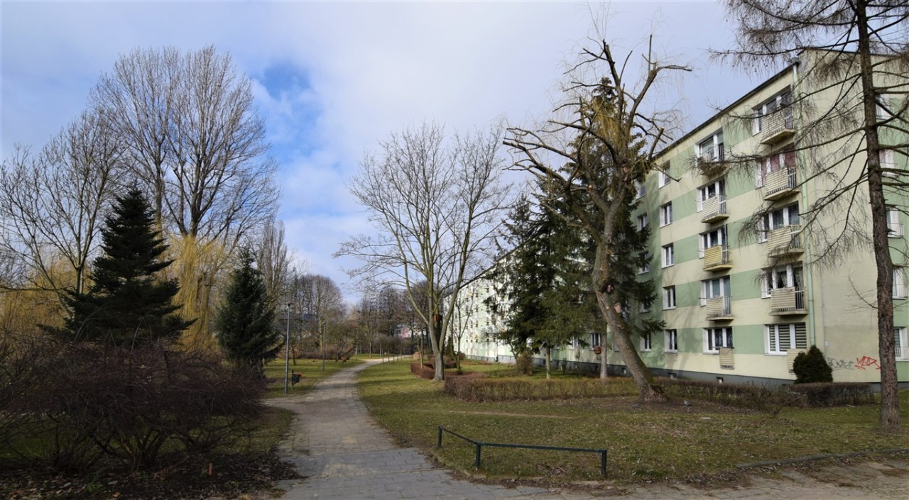 Jednopokojowe mieszkanie położone na wysokim parterze w czteropiętrowym bloku w dzielnicy Tysiąclecie przy ul. Kiedrzyńskiej.