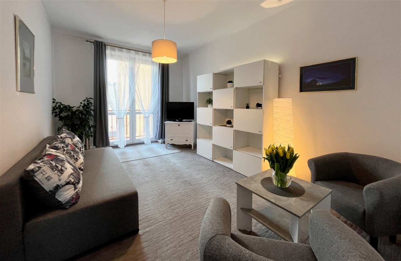 Dwupokojowe mieszkanie o powierzchni 45 m2 położone na 2 piętrze w trzypiętrowym bloku przy Al. NMP w Centrum miasta, przeznaczone optymalnie dla 1 lub 2 osób, bez zwierząt.