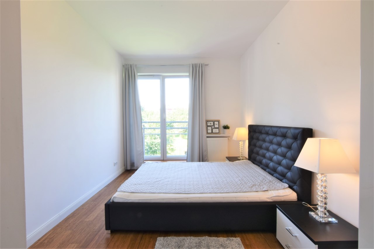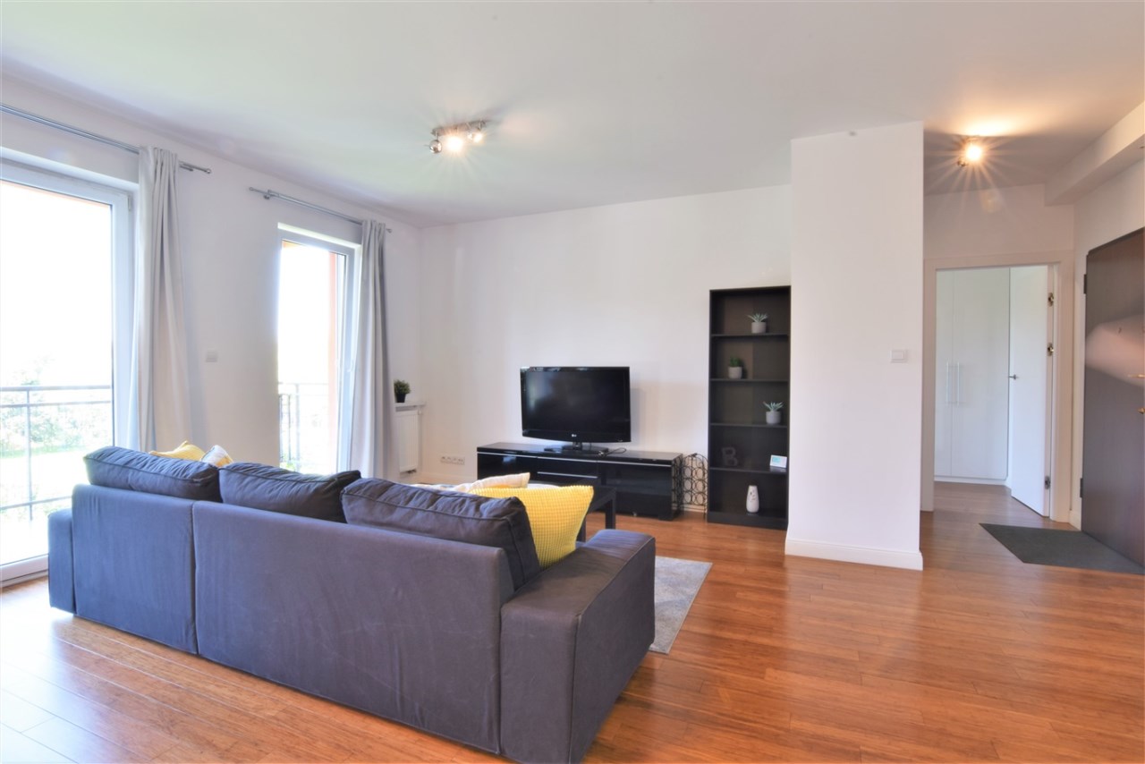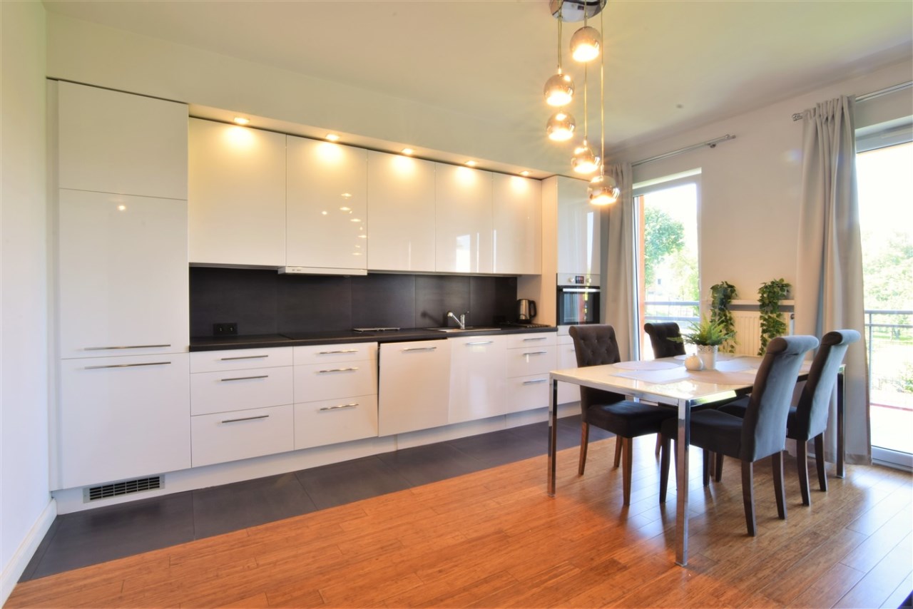Wysoki standard wykończenia. Mieszkanie dobrze doświetlone - duże, panoramiczne okna (ładny widok na ogród), duży balkon.