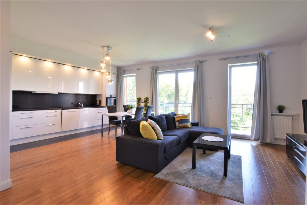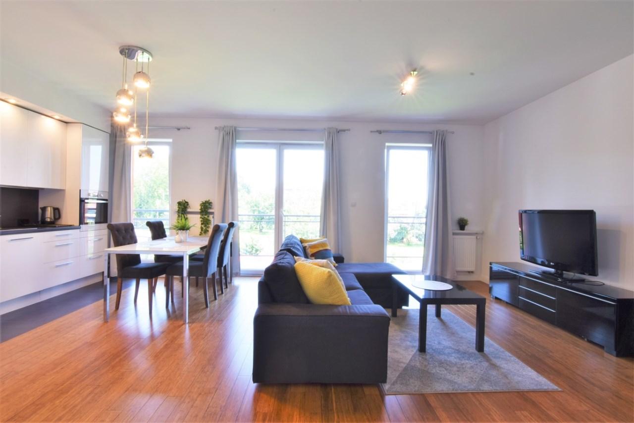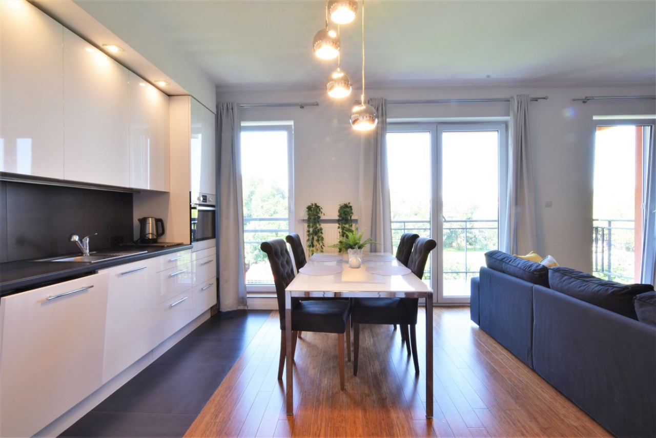 Wysoki standard wykończenia. Mieszkanie dobrze doświetlone - duże, panoramiczne okna (ładny widok na ogród), duży balkon.