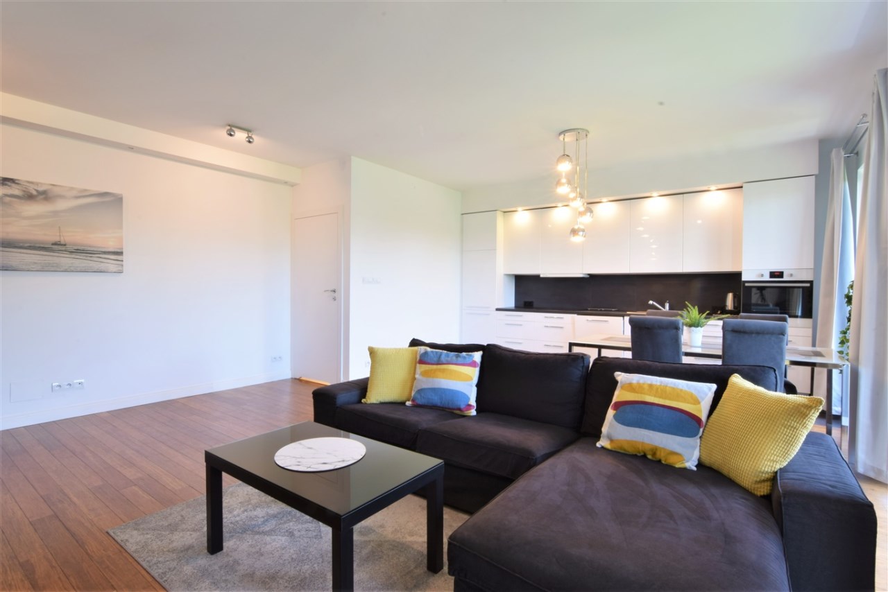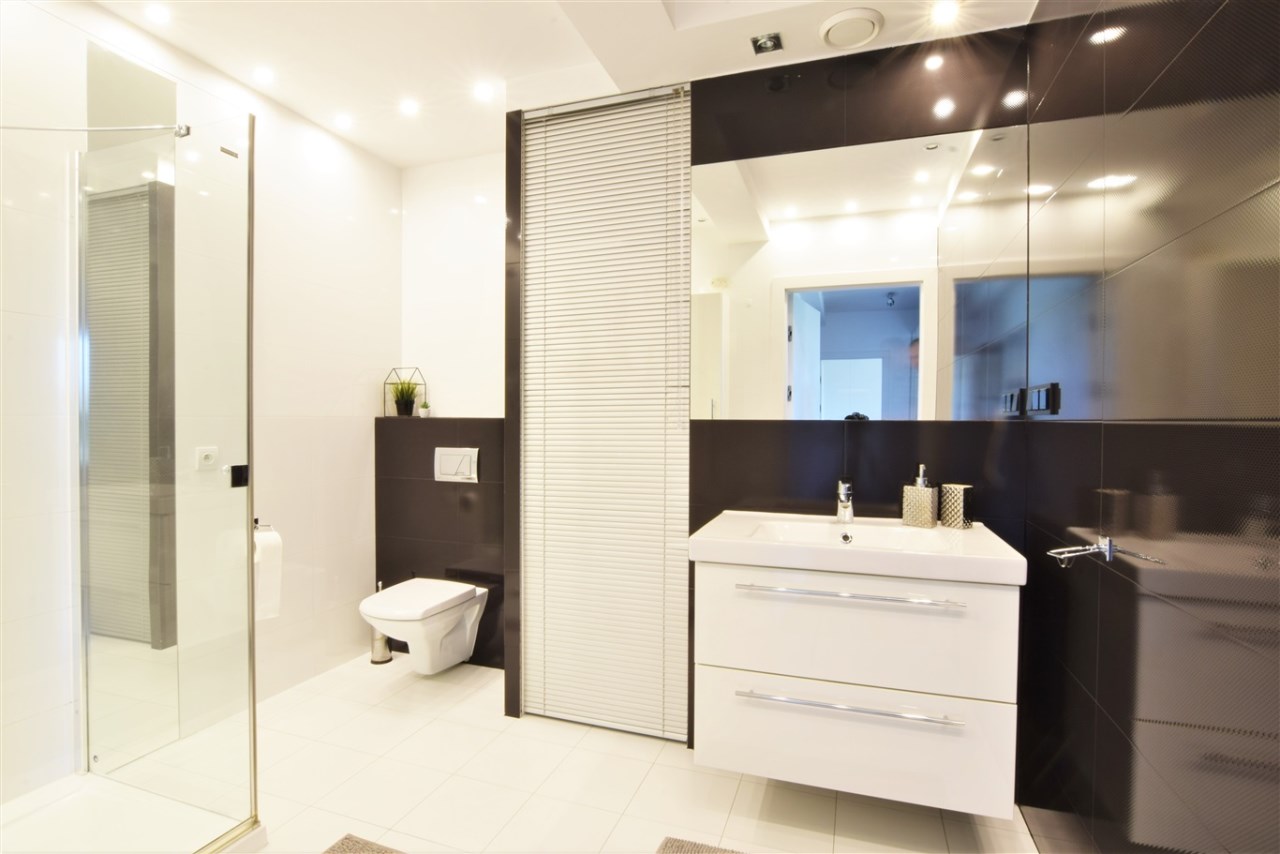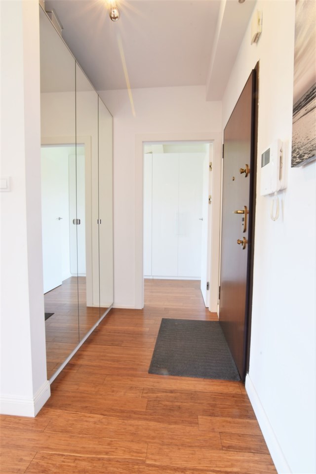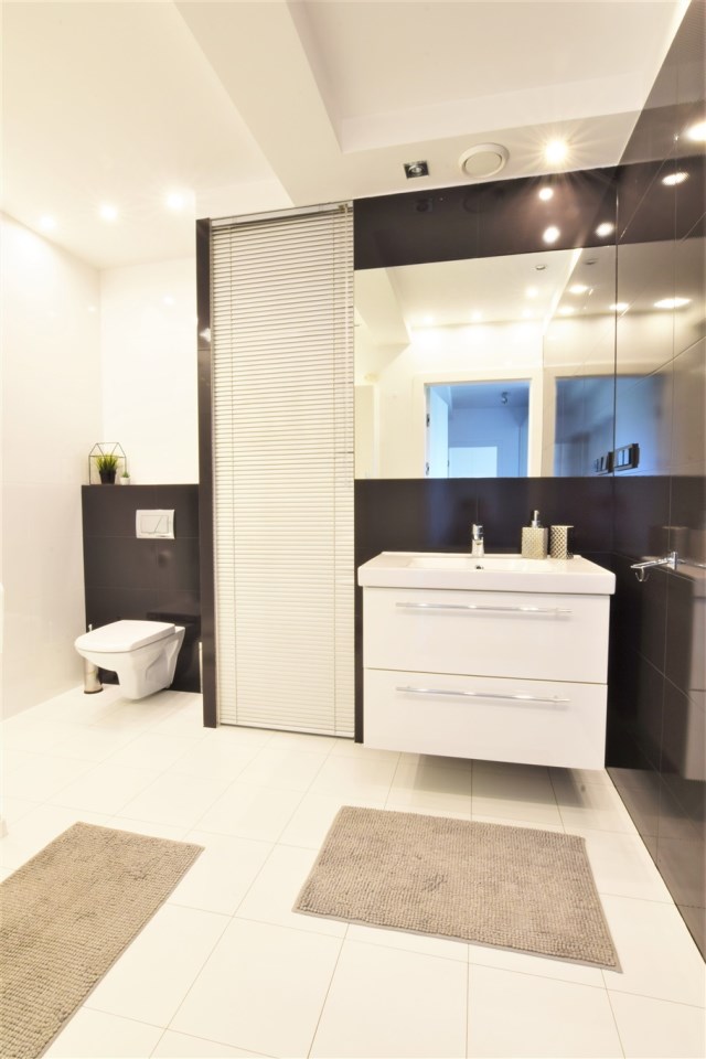 Cały apartament został wykończony ze smakiem z dobrej jakości materiałów pod okiem architekta wnętrz.
